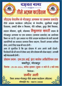 गोरखपुर। गौसे आज़म फाउंडेशन (जीएएफ़) की ओर से रविवार 29 सितंबर को मियां साहब इस्लामिया इंटर कॉलेज बक्शीपुर (एमएसआई) के सभागार में सुबह 11 से दोपहर 2 बजे तक सम्मान समारोह व संगोष्ठी का आयोजन किया जाएगा। यह जानकारी फाउंडेशन के जिलाध्यक्ष समीर अली व महासचिव मो. अमन ने दी है।
