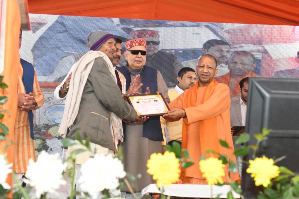 राजकीय कृषि विद्यालय के प्रशासनिक भवन और किसान हॉस्टल का फीता काटकर लोकार्पण करने के बाद मुख्यमंत्री ने दोनों का भ्रमण एवं निरीक्षण किया। इस अवसर पर उन्होंने कृषि विद्यालय परिसर में कृषि विभाग के सात लाभार्थी किसानों/फार्मर्स प्रोड्यूसर कम्पनियों के प्रतिनिधियों को ट्रैक्टर की चाबी सौंपी। इसके बाद उन्होंने जनता इंटर कॉलेज चरगांवा में बने मंच पर कृषि विभाग की विभिन्न योजनाओं के 14 लाभार्थियों को प्रमाण पत्र वितरित किए। इन लाभार्थियों को रोटावेटर, पॉवर टिलर, सोलर पम्प, थ्रेसर, स्ट्रा रिपर, कम्बाइन हार्वेस्टर, स्माल गोदाम, मानव रहित चेफ कटर व सम्मान निधि का लाभ प्राप्त हुआ।