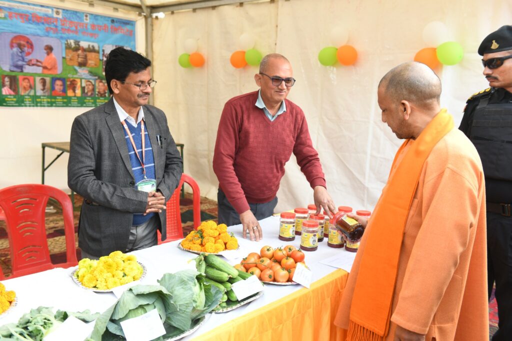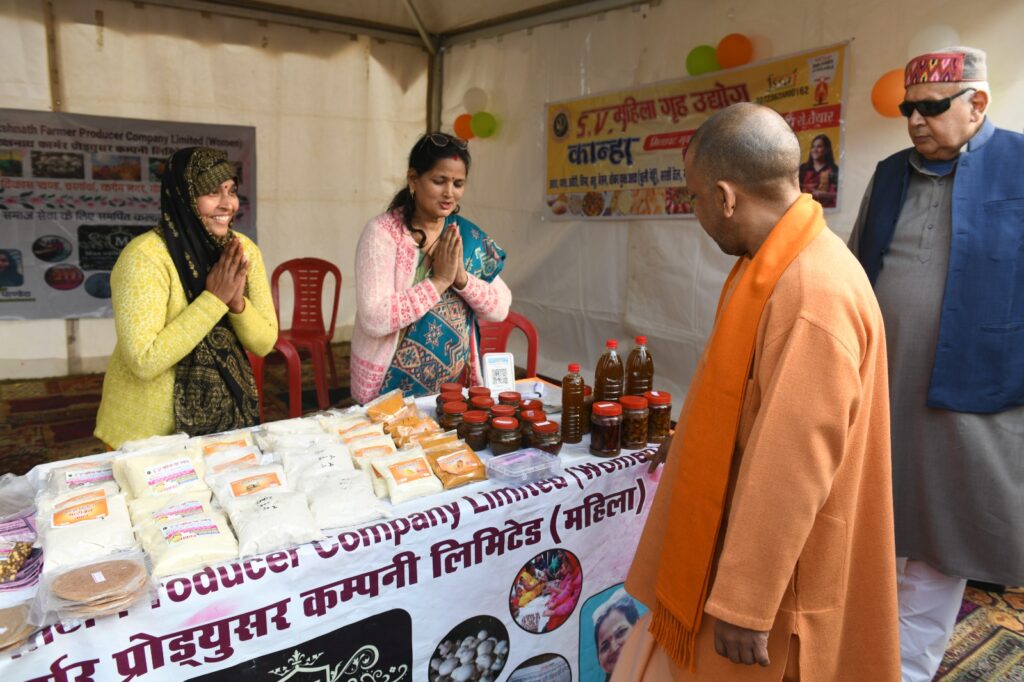 मुख्यमंत्री योगी आदित्यनाथ ने कार्यक्रम स्थल पर कृषि, उद्यान, पशुपालन, मत्स्यपालन आदि विभागों तथा फार्मर्स प्रोड्यूसर कम्पनियों की तरफ से लगाए गए स्टालों का भी अवलोकन किया। इस दौरान उन्होंने स्टालों पर प्रदर्शित उत्पादों के बारे में जानकारी ली। कृषि नमो ड्रोन के स्टाल पर मुख्यमंत्री ने नमो ड्रोन दीदी तथा अन्य स्टालों पर मौजूद लोगों से बातचीत कर हौसला अफजाई की। बाल विकास विभाग के स्टाल पर सीएम योगी ने बच्चों का अन्नप्राशन कराया और खूब दुलाकरकर उन्हें उपहार व आशीर्वाद दिया। उन्होंने इसी स्टाल पर गर्भवती महिलाओं की गोदभराई कर उन्हें पोषण किट का उपहार दिया।