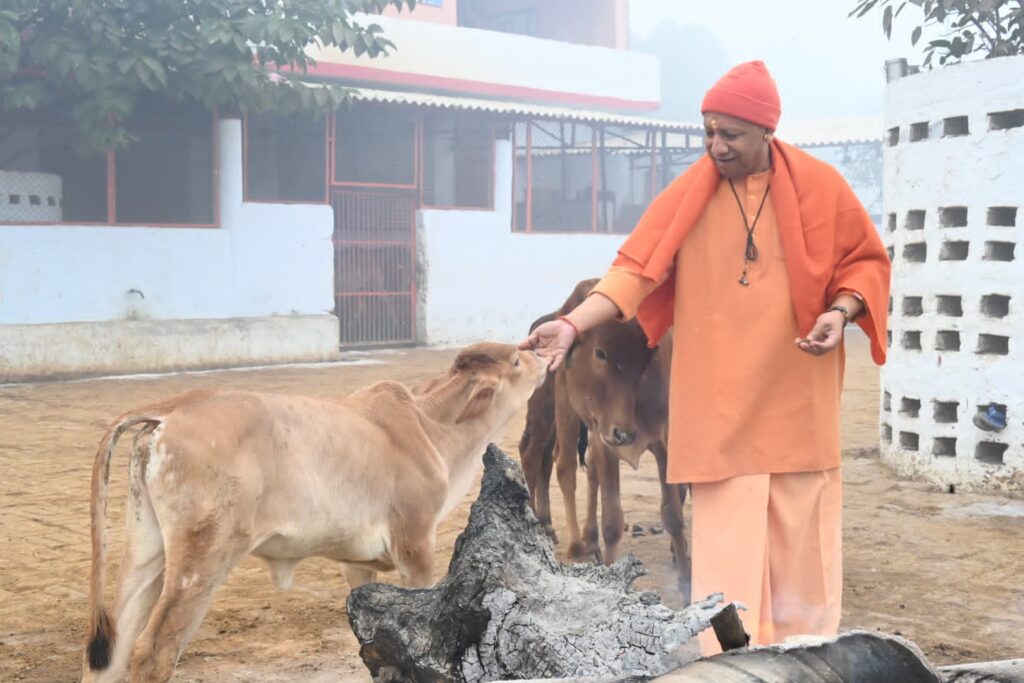 गोरखनाथ मंदिर की गोशाला में सीएम योगी ने की गोसेवा