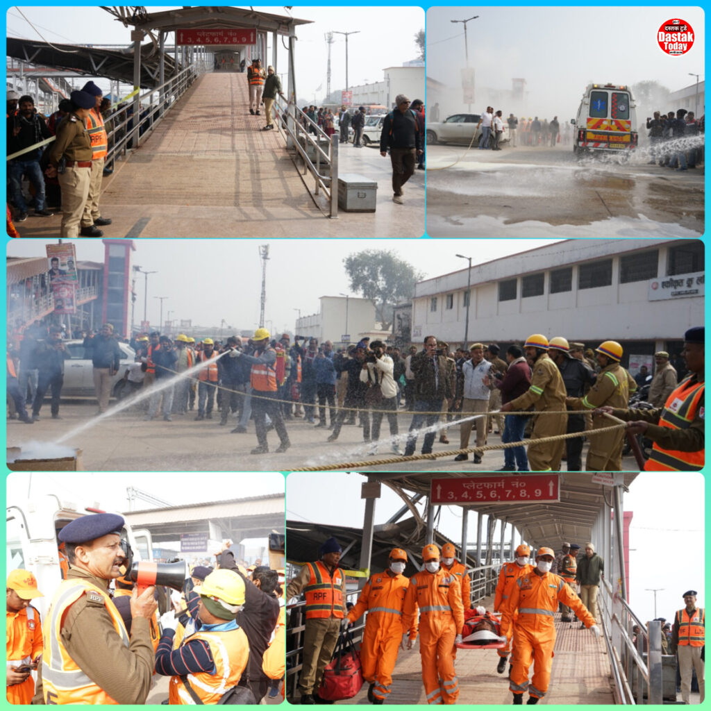 गोरखपुर, 4 जनवरी। रेलवे स्टेशन के प्लेटफार्म संख्या 01 पर स्थापित पश्चिम पुल (फुट ओवर ब्रिज) के समीप मॉक ड्रिल कार्यक्रम का आयोजन किया गया। 13 जनवरी 2025 से आयोजित होने वाले महाकुंभ तथा खिचड़ी मेला पर्व के दौरान रेल मार्ग से भारी संख्या में श्रद्धालुओं के आने की संभावना है, जिसके दृष्टिगत रेलवे स्टेशन पर श्रद्धालुओं की सुरक्षा हेतु समुचित व्यवस्थाएं सुनिश्चित हों तथा सभी विभागों के मध्य समन्वय स्थापित रहे, इसी को लेकर मॉक ड्रिल कार्यक्रम का आयोजन किया गया।