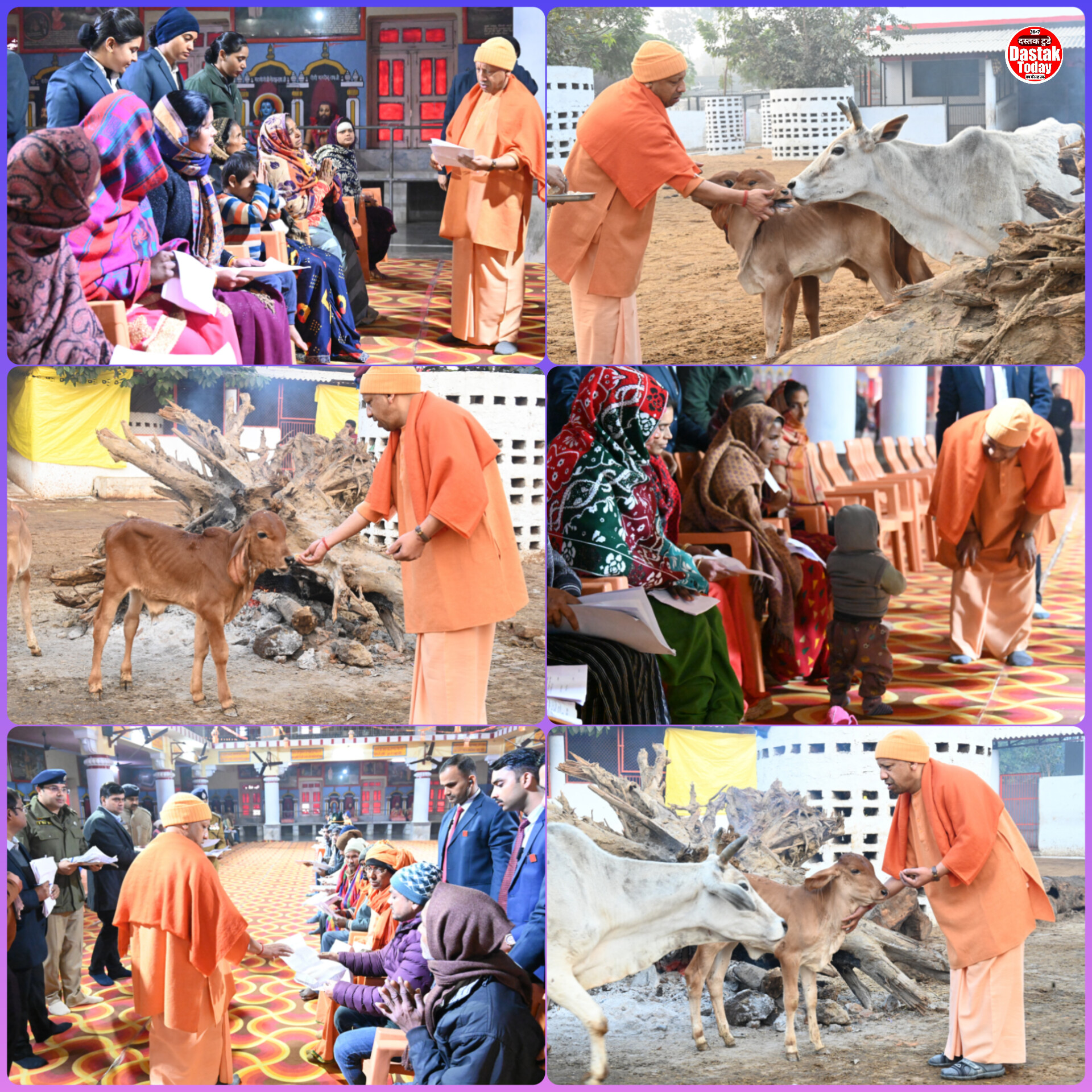 मंदिर की गोशाला में सीएम योगी ने की गोसेवा*