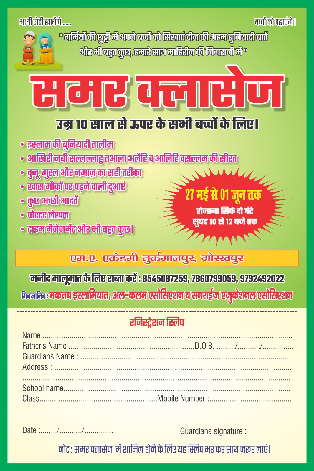 जामिया अल इस्लाह एकेडमी में छह दिवसीय समर कैंप का आगाज,-समर कैंप बच्चों के विकास में सहायक है : अली अहमद,-हर दिन नई थीम से जुड़ेंगे बच्चे